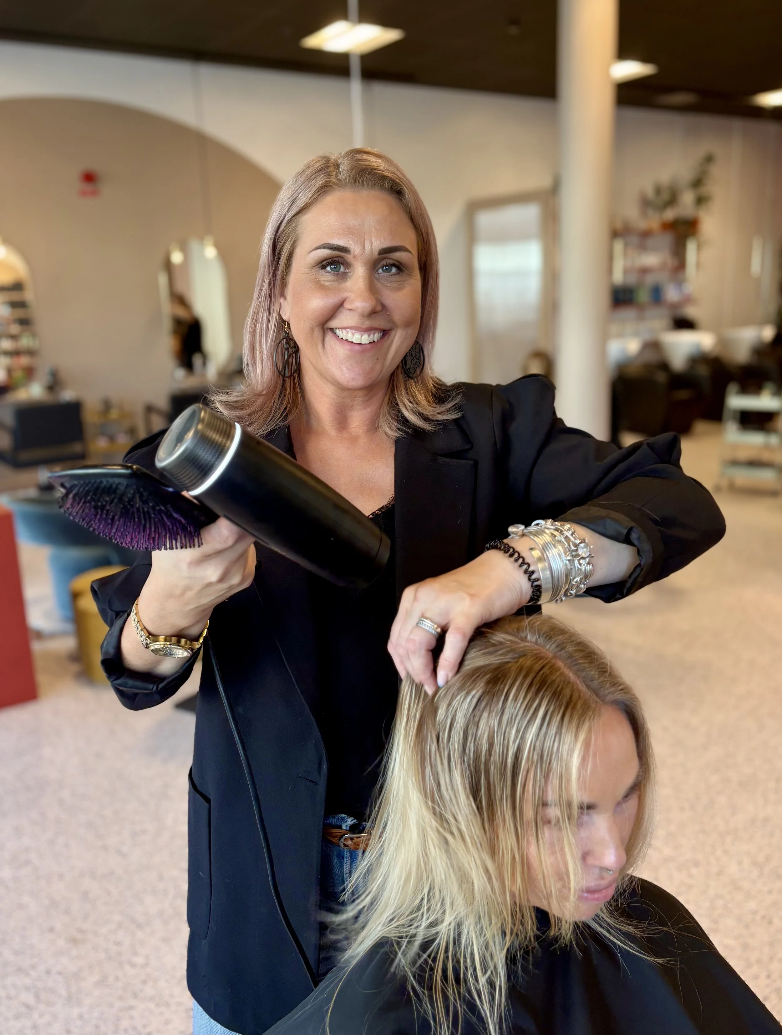Glad, energisk och nyfiken 3-barnsmamma med stor yrkesstolthet. Kommer ursprungligen från lilla Hjo, trästaden vid Vättern. Efter 30 år som frisör känner hon fortfarande att yrket är ett oerhört stimulerande och spännande. Älskar att måla allt som går att måla!